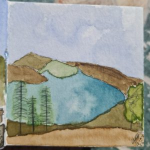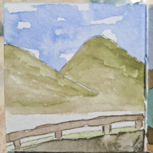 Ik schat in dat ik best wel naar de overkant kan fietsen, maar dat gaat toch niet helemaal soepel, dus ik eindig met natte sokken. Er staat ook nog een oud echtpaar met e-bikes en een hondje verloren naar het water te kijken. Dennis stelt voor of we ze kunnen helpen, maar ze besluiten om te draaien en een andere route te zoeken.